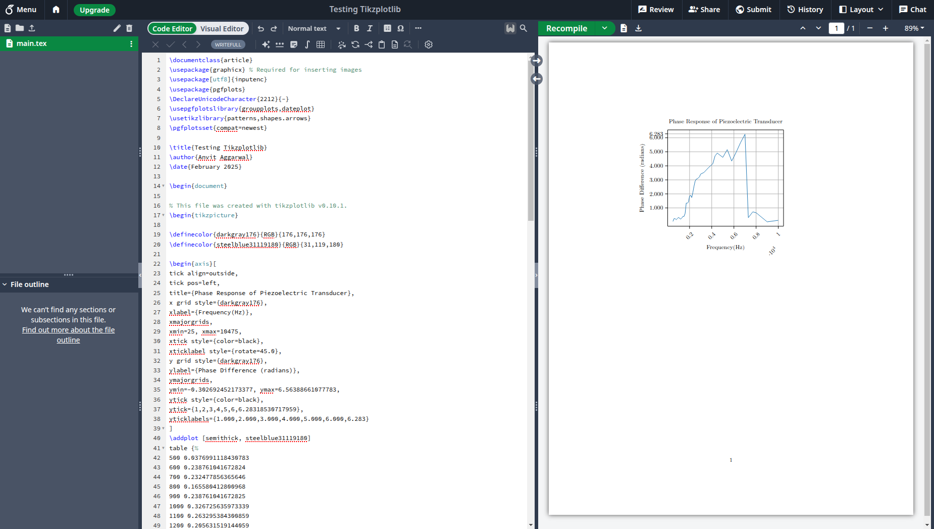 I tried to obtain the LaTex code for this graph that I had plotted for an Electrical Engineering assignment.